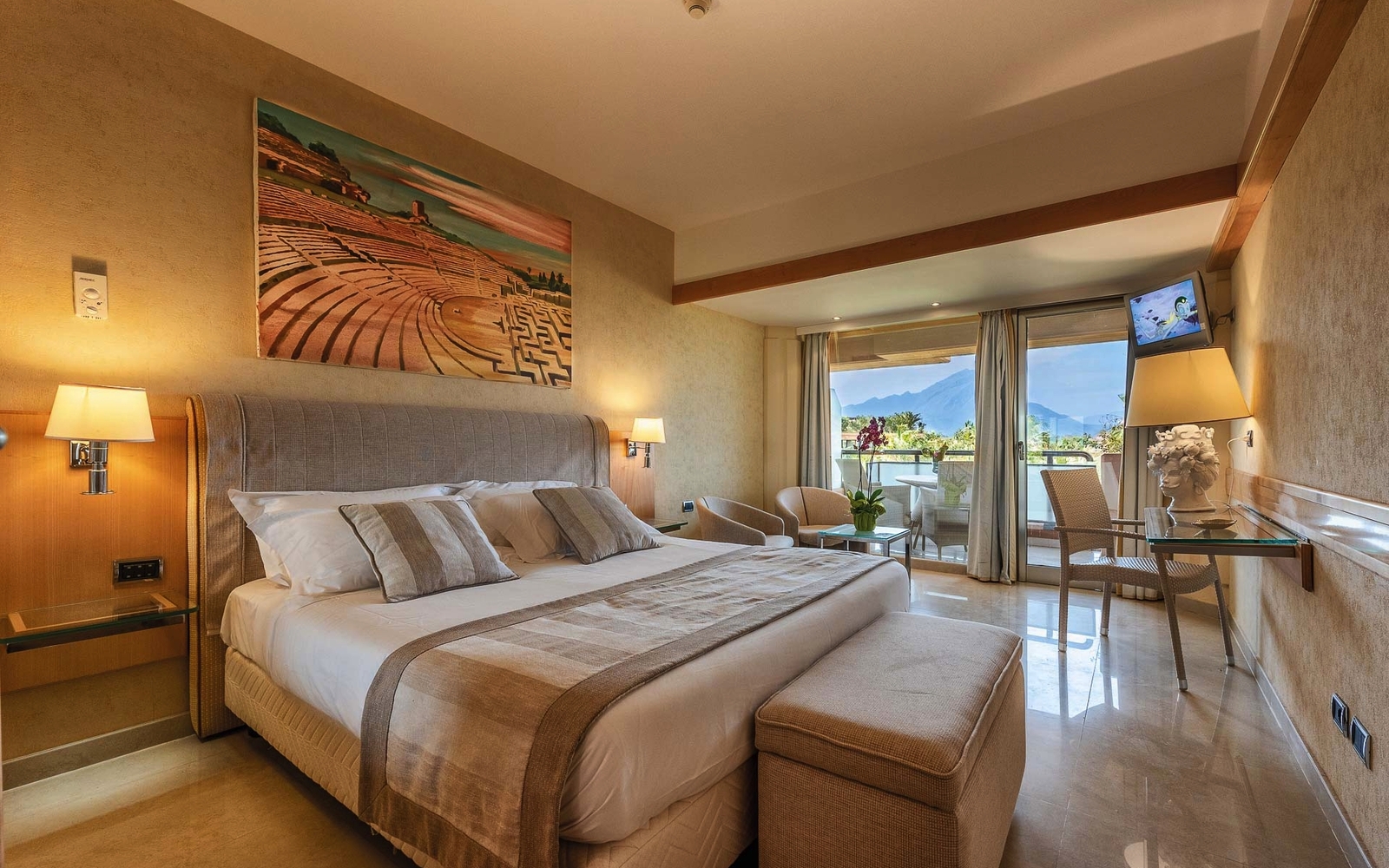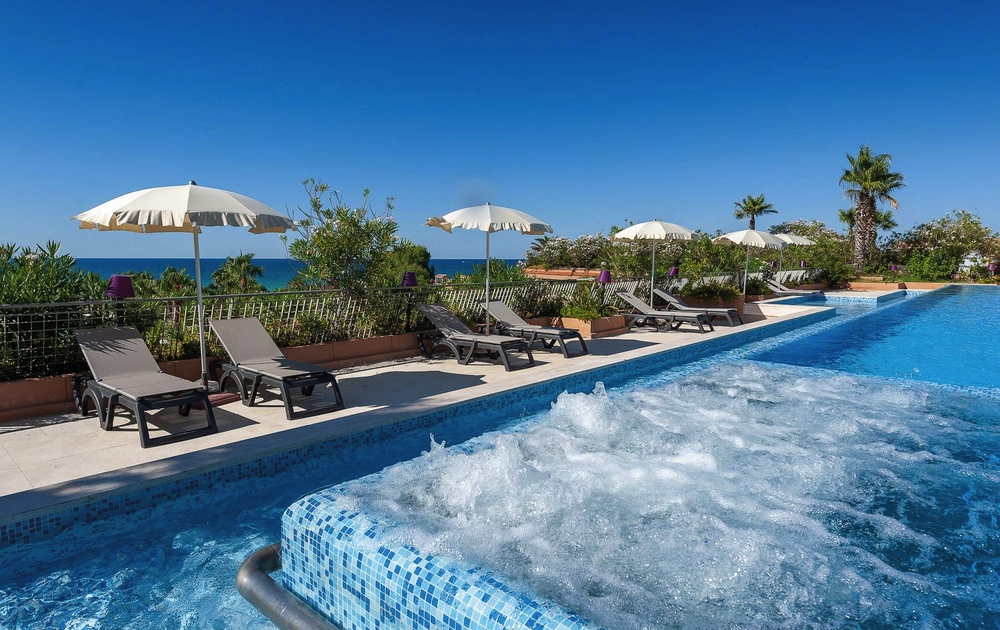 Eingebettet in einer tropischen, knapp 40.000 m² großen Gartenanlage mit einem riesigen, karibischen Pool und Sonnenterrasse, liegt das elegante Hotel ruhig und direkt am Strand (im Flutsaum kieselig) des Ortes Campofelice, ca. 20 Fahrminuten von Cefalù entfernt (Shuttleservice – sasional, nach Verfügbarkeit, ggfs. gegen Gebühren). Das äußerst komfortable Haus zählt zu den Top-Adressen auf Sizilien und verknüpft stilvolles Ambiente mit legerem Urlaubsgefühl. Ein schöner Spa-Bereich (mit eigenem Pool auf dem Dach/gegen Gebühr & sasional), Fitnessraum, Restaurant sowie mehreren Bars (abends teilweise mit Live-Musik) runden das Angebot ab. Liegen und Sonnenschirme sind am Pool und im Gartenbereich inklusive. Das Acacia Resort wird bei unseren Gästen auch für die gute Verpflegung geschätzt. Die Halbpension ist bereits inklusive. Für Kinder und Familien gibt es Kinderspielplätze und viele Spielmöglichkeiten in der Gartenanlage.
