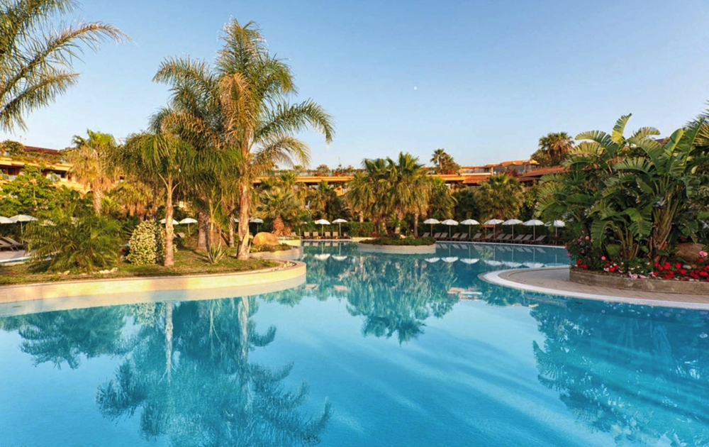 Eine traumhaft schöne, luxuriöse Hotelanlage mit guter Küche direkt am Strand gelegen. Im tropischen Garten befindet sich einer der größten Pools Siziliens.