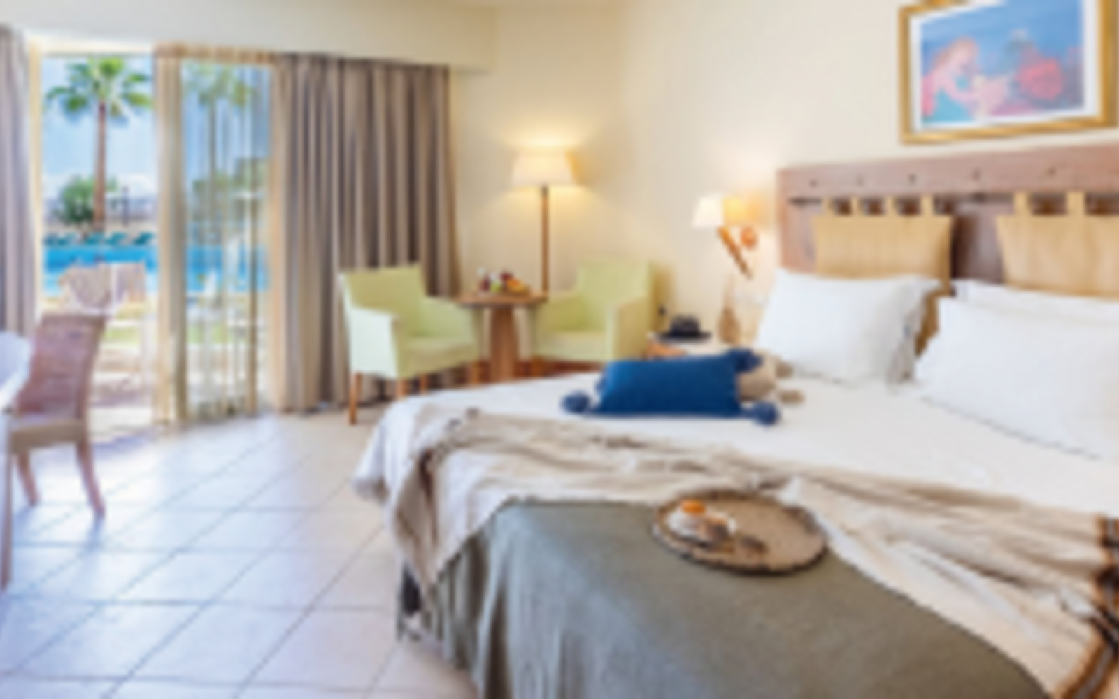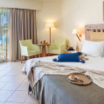 Komfortabel und freundlich eingerichtet, mit Klimaanlage, TV, Safe, Kühlschrank/Minibar, Kaffee-/Teezubereiter und Bad oder Dusche/WC und Balkon oder Terrasse mit Blick über den Garten, den Pool oder zum Meer. Die Familienzimmer sind größer.
