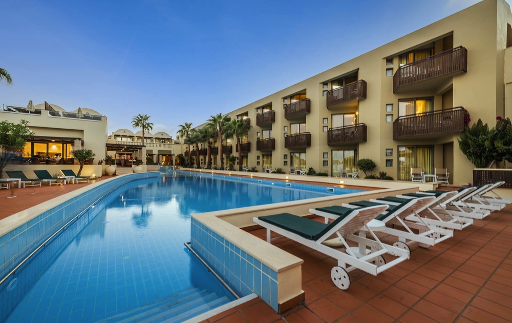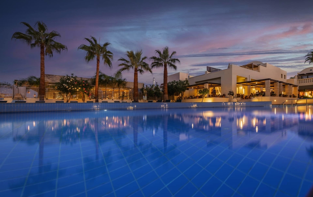 Direkt am Sandstrand von Agia Marina gelegen, ist dieses Hotel ein perfekter Ort für Badefreuden und mediterrane Lebenslust. Das sanfte Rauschen der Wellen begleitet Sie beim Frühstück, während die Sonne den Horizont in Gold taucht. Tavernen, Cafés und kleine Boutiquen liegen nur einen Spaziergang entfernt. Das 8 km entfernte Chania reizt zudem als Ausflugsziel. Das Hotel bietet eine großzügige Lobby, ein Buffetrestaurant mit internationalen Klassikern und kretischen Spezialitäten sowie weitere a la carte und Spezialitätenrestaurants (gegen Gebühr) und mehrere Bars. Der Pool mit Kinderbecken, Sonnenterrassen und gepflegten Gartenanlagen (Liegen und Sonnenschutz inklusive) laden zum Entspannen ein.