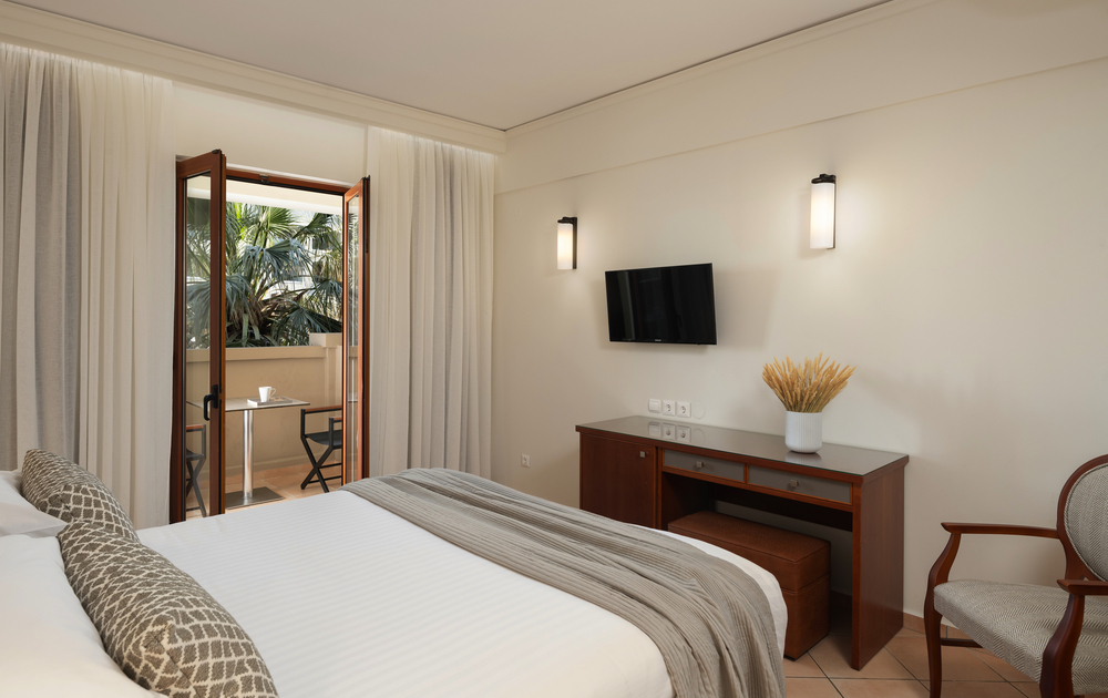 Schöne Zimmer, ausgestattet mit Klimaanlage, TV, Bad oder Dusche/WC und Balkon oder Terasse. Die Superiorzimmer verfügen neben einer modernen Ausstattung über eine vorteilhafte Lage im Hotel. Die Familienzimmer bieten mehr Platz.