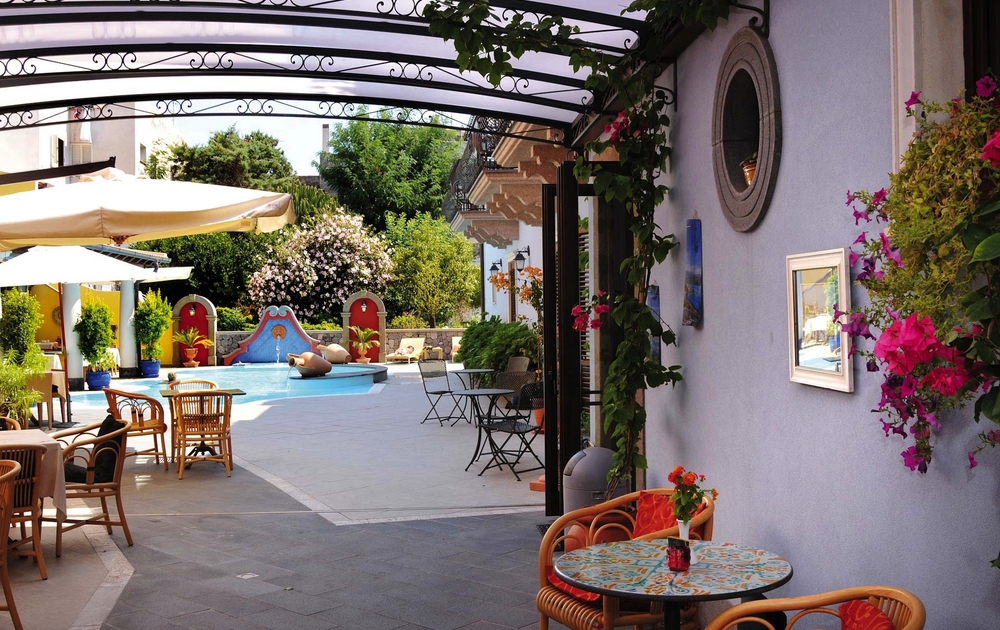 Das kleine Hotel ist stilvoll und mit viel Flair und Liebe zum Detail eingerichtet. Nur wenige Gehminuten bis in das Zentrum, zum kleinen Hafen und Kieselstrand. Die vier im äolischen Stil erbauten Gebäudeteile schaffen eine angenehme Atmosphäre. Schönes Restaurant, Bar und Swimmingpool (saisonal, wetterabhängig) runden den Gesamteindruck ab.