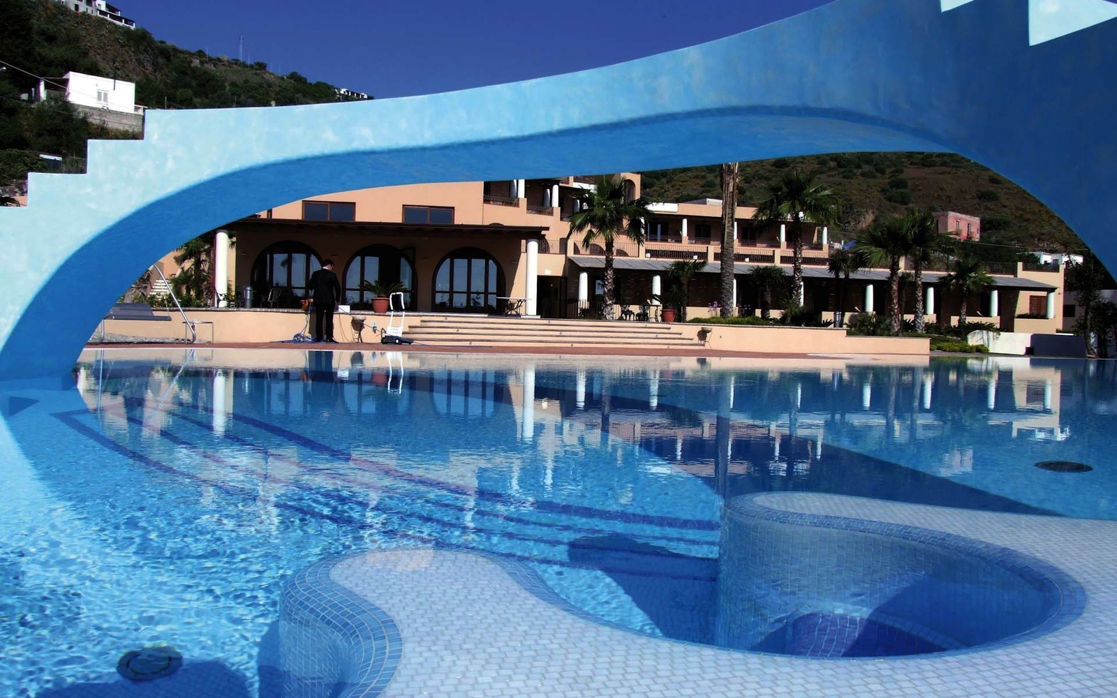 Nur ca. 500 m von dem Zentrum von Lipari und dem großen Hafen, an dem Sie ankommen und abreisen werden, und 1 km vom kleinen Hafen, an dem die Ausflüge starten werden, entfernt. An einem Hang mit schönem Ausblick gelegen, verfügt das kleine, gepflegte Hotel über eine komfortable Ausstattung. In der ruhigen Gartenanlage befindet sich der große Swimmingpool (saisonal, wetterabhängig) mit Liegen und Sonnenschirmen (ohne Gebühr). Für das leibliche Wohl sorgen ein Restaurant und eine Bar. Ein eigener Shuttleservice ist vorhanden (saisonal, nach Verfügbarkeit, ggfs. gegen Gebühren).