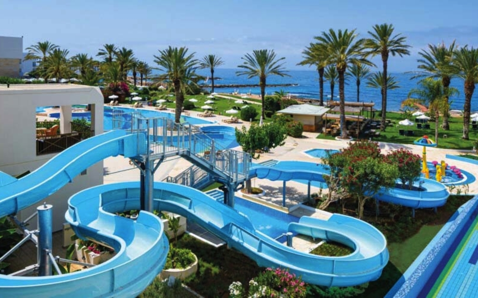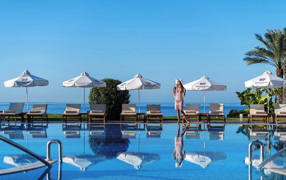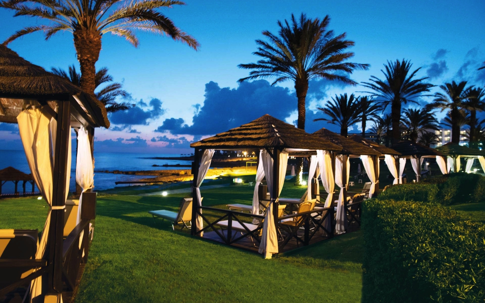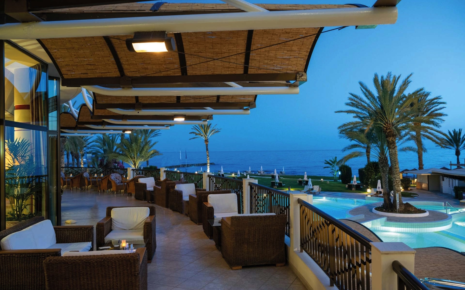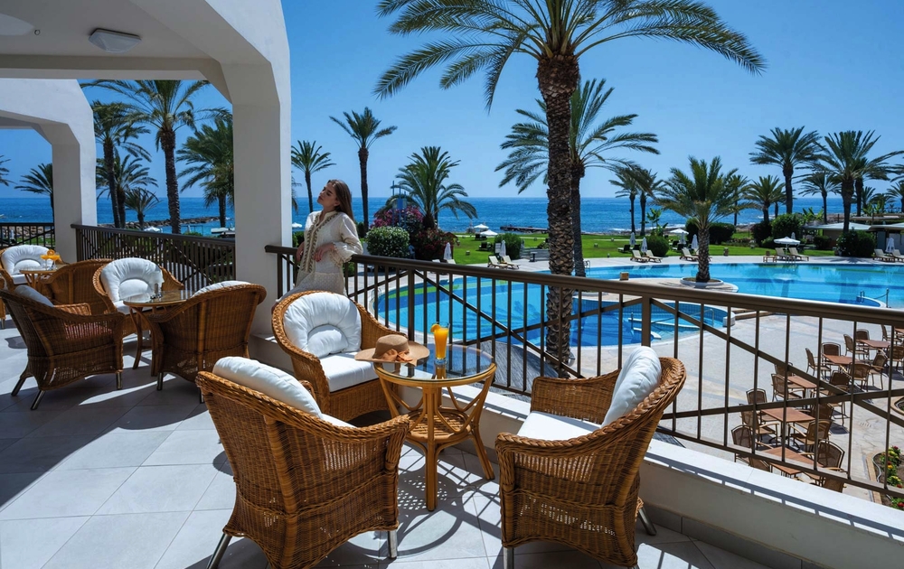 Das Hotel der bekannten Constantinou Bros Hoteliers ist sehr komfortabel und mit allen Annehmlichkeiten ausgestattet. Nur ca. 2 km entlang der Uferpromenade ins schöne Paphos mit Restaurants, Bars und seinem Yachthafen. Die Badebucht mit kleinem Strand (teilw. Felsen) und Steg grenzt unmittelbar an die schöne Gartenanlage. Insgesamt 4 Pools (davon ein Hallenbad), verschiedene Restaurants (teilweise gegen Zuzahlung) und 4 Bars befinden sich im gepflegten Hotelbereich. Fitnessraum und Unterhaltung wird ebenso geboten, wie eine Radsportstation mit