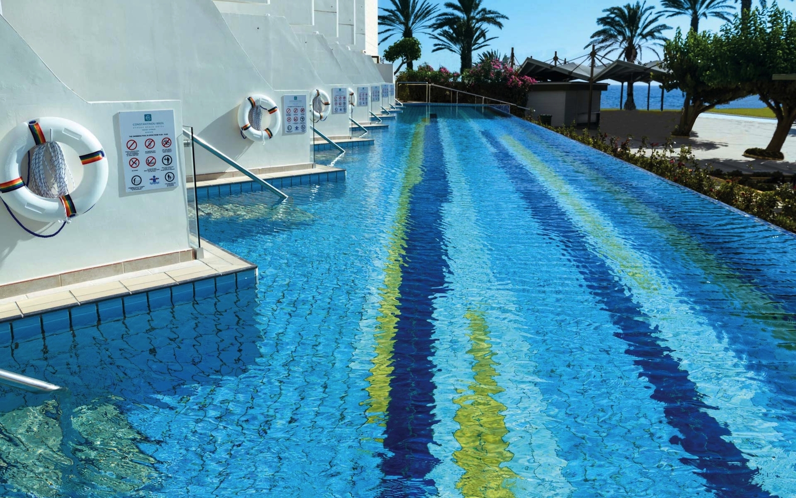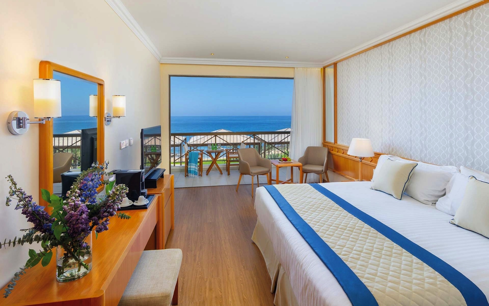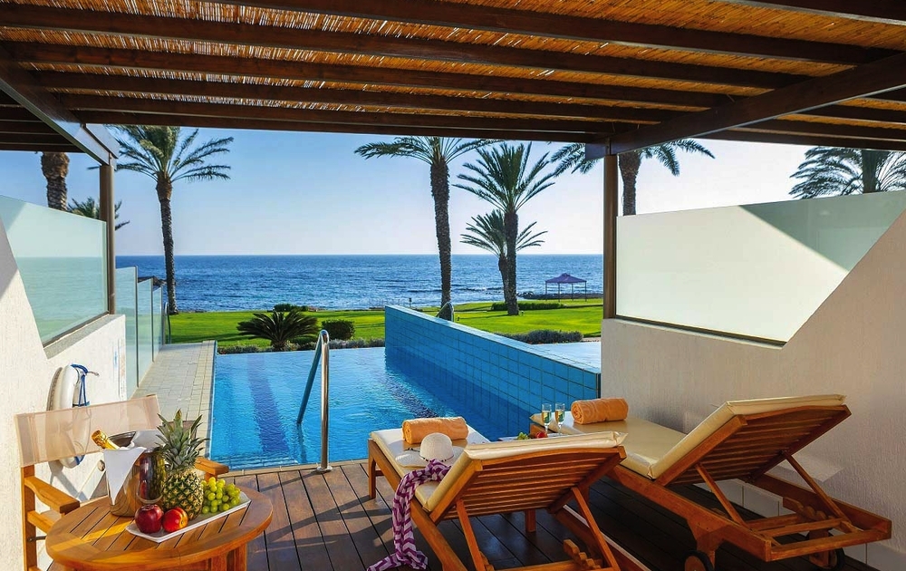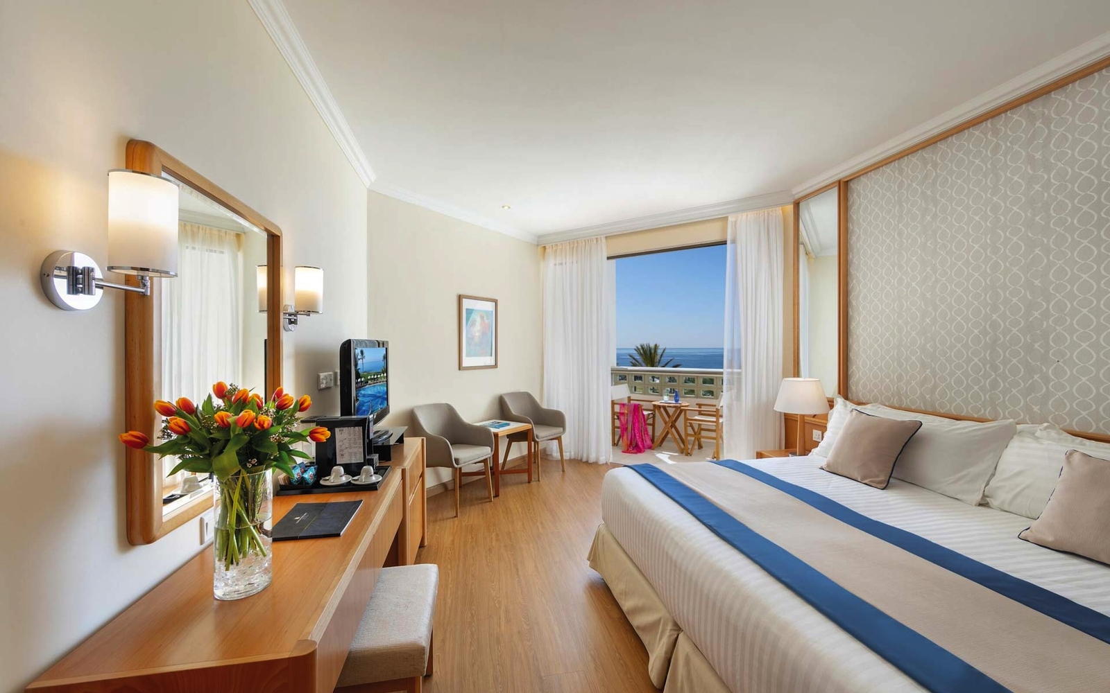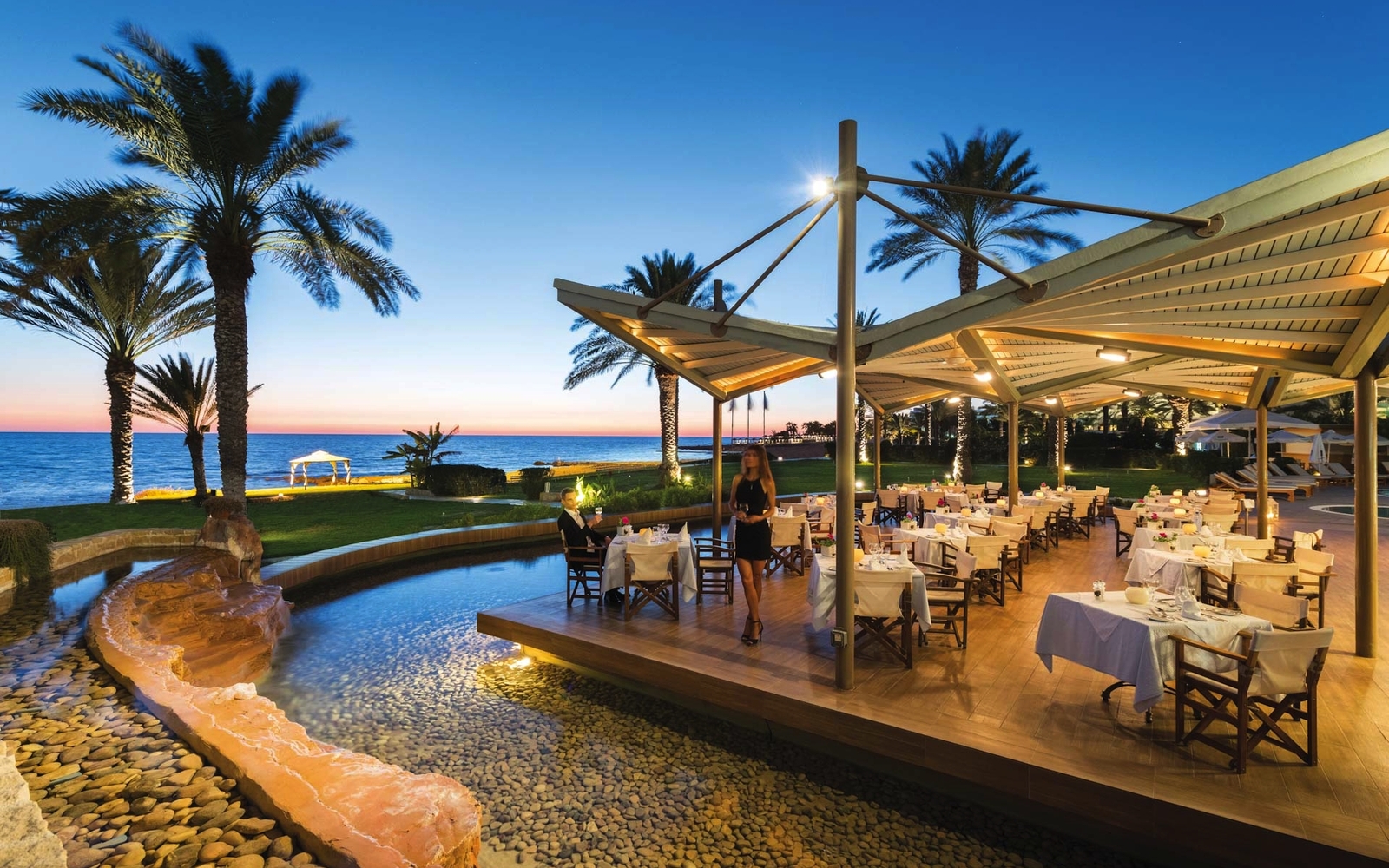 Das Hotel der bekannten Constantinou Bros Hoteliers ist sehr komfortabel und mit allen Annehmlichkeiten ausgestattet. Nur ca. 2 km entlang der Uferpromenade ins schöne Paphos mit Restaurants, Bars und seinem Yachthafen. Die Badebucht mit kleinem Strand (teilw. Felsen) und Steg grenzt unmittelbar an die schöne Gartenanlage. Insgesamt 4 Pools (davon ein Hallenbad), verschiedene Restaurants (teilweise gegen Zuzahlung) und 4 Bars befinden sich im gepflegten Hotelbereich. Fitnessraum und Unterhaltung wird ebenso geboten, wie eine Radsportstation mit