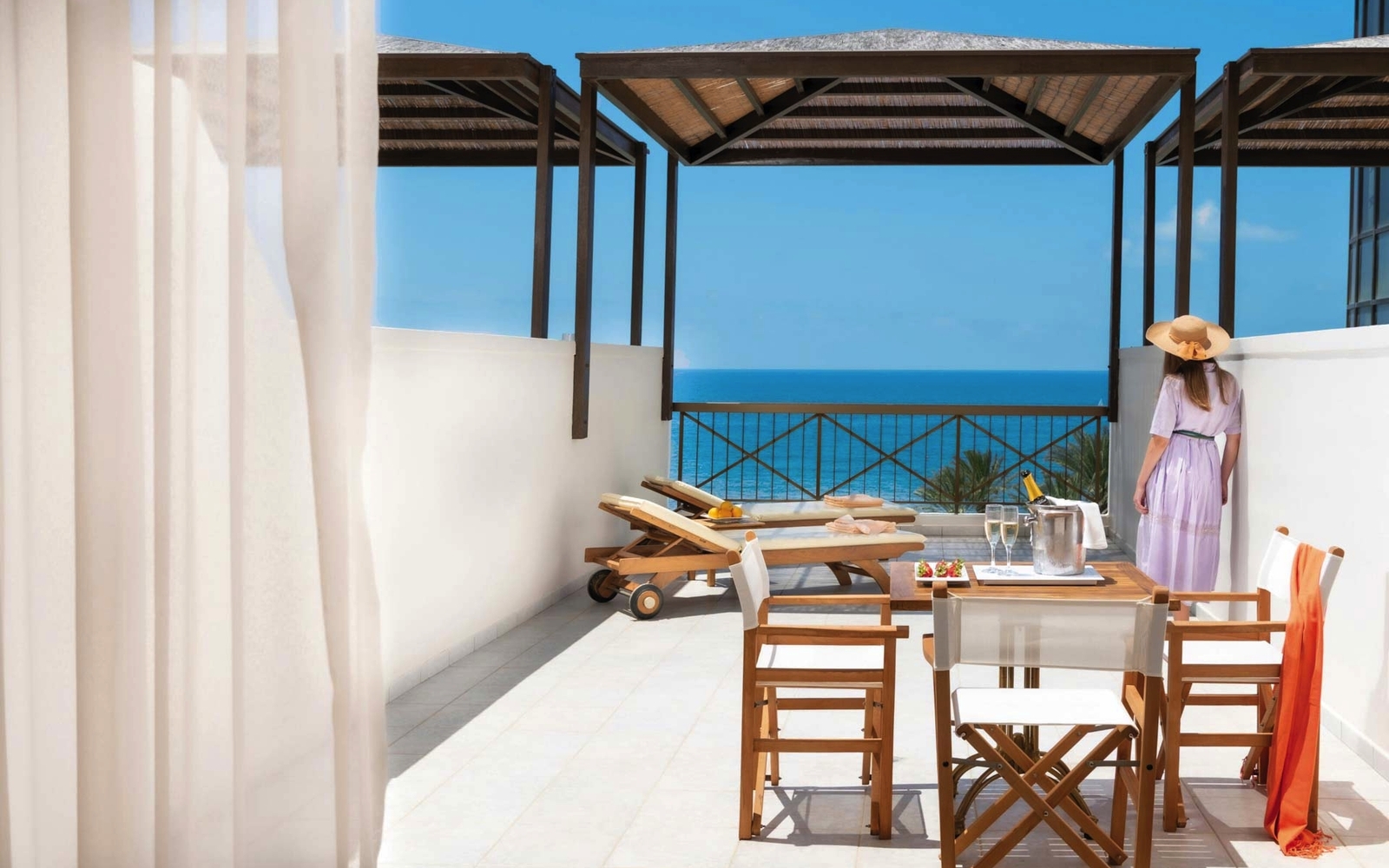 Diese Zimmer (zwischen 26 m² und 30 m²) sind bei gleicher Ausstattung mit Balkon oder großer Terrasse mit Veranda und Sonnenliegen ausgestattet. Die Zimmer mit Balkon verfügen über eine private Cabana mit Sonnenliegen sowie ein Bad mit Badewanne und Dusche.