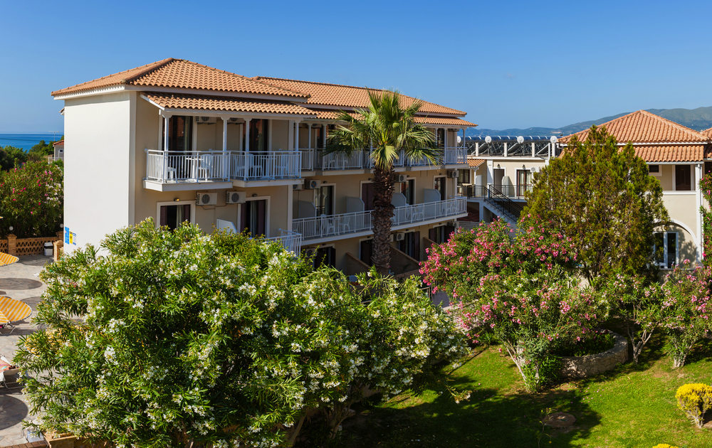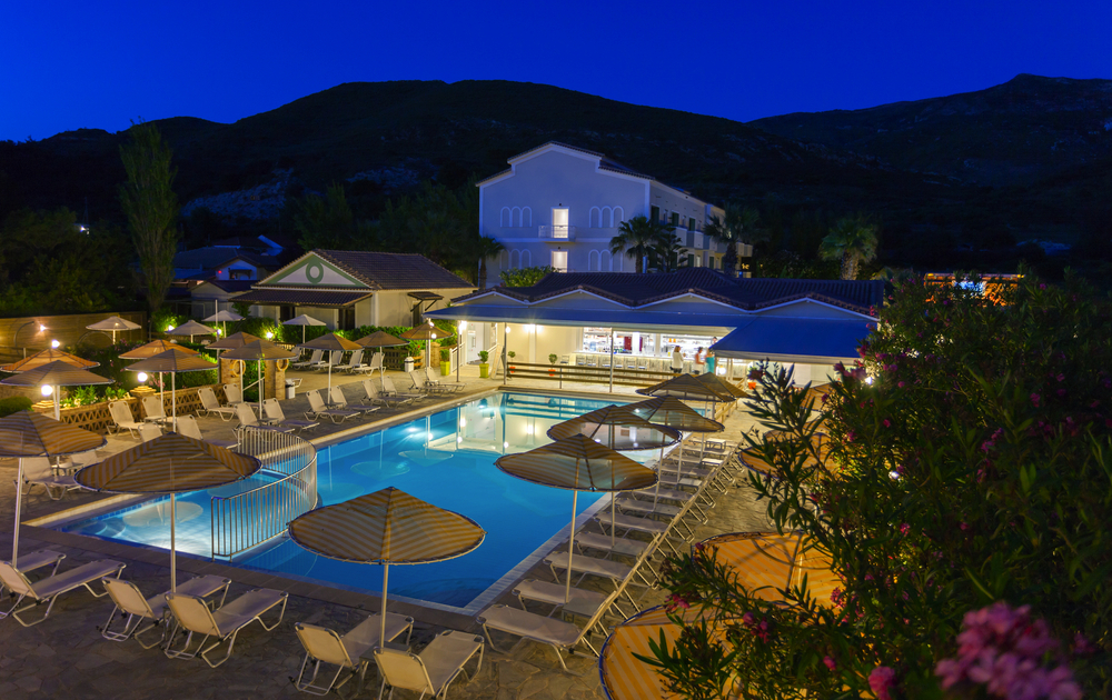 Das Hotel liegt in idealer Lage nahe dem bekannten Strand von Argassi nahe dem Naturschutzgebiet - perfekt für Badeurlauber und Sonnenanbeter. Geschäfte, Restaurants und Bars sind bequem zu Fuß erreichbar, und die Inselhauptstadt Zakynthos-Stadt und das bekannte Laganas liegt nur wenige Kilometer entfernt. Eine Bushaltestelle befindet sich in der Nähe. Das Haus bietet eine einladende Lobby mit Rezeption, ein Restaurant mit mediterraner Küche sowie eine Bar für den Drink am Abend. Im Außenbereich erwartet Sie ein Pool mit Liegen und Sonnenschirmen - ideal für entspannte Stunden unter der griechischen Sonne.