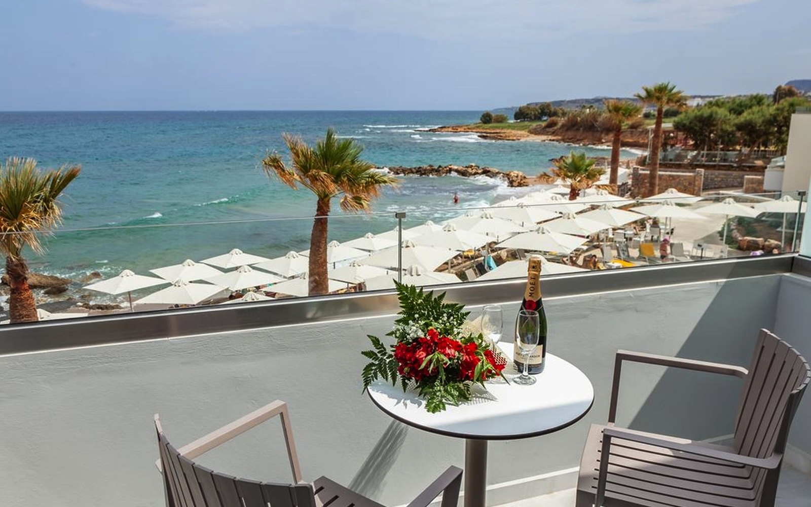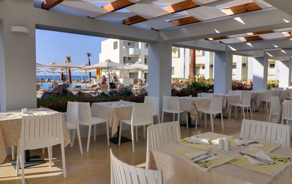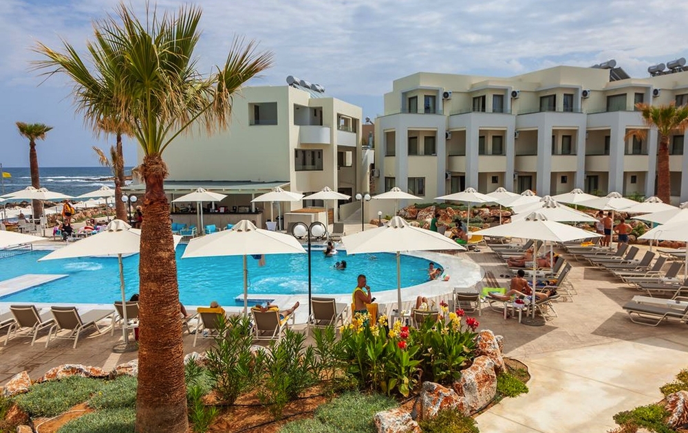 Direkt am langen Strand (Sand/Kies) ca 10 km östlich von Rethymno gelegen, mit Blick auf das Meer. Die Altstadt ist schnell erreichbar. Tavernen und Shops liegen in der Nähe. Der Hotelpool ist zum Meer ausgerichtet (Liegen und Schonnenschutz inklusive). Das sehr gute Preis-Leistungsverhältnis dieses All Inclusive Hotels sorgt für Urlaub für die ganze Familie zu Top Konditionen. Das Hauptrestaurant serviert nationale und internationale Speisen zu den Mahlzeiten. Neben der Hauptbar gibt es auch eine Poolbar.
