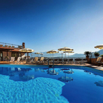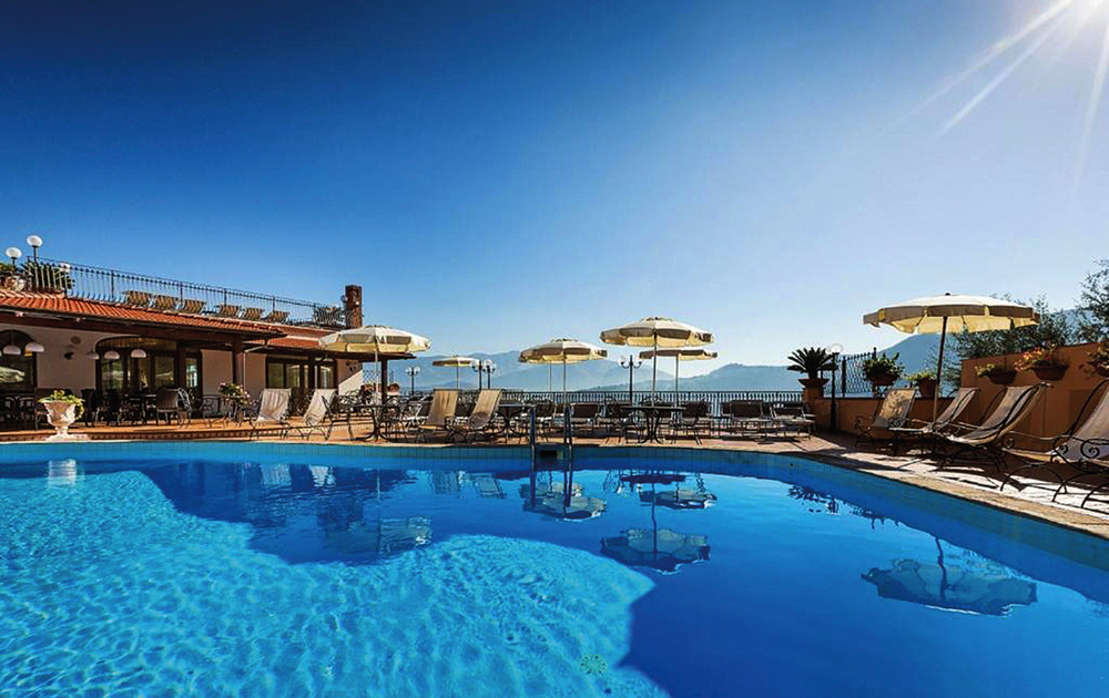 das Meer bis hin zum Vesuv mit einzigartigen Sonnenuntergängen. Sorrent erreicht man nach ca. 5 km z.B. mit dem hoteleigenen Shuttlebus (sasional, nach Verfügbarkeit, ggfs. gegen Gebühren), dem Linienbus oder per Taxi. Von der Poolterrasse mit Sonnendeck (Liegen und Schirme inkl.) hat man wie vom Panoramarestaurant ebenfalls ein einzigartiges Panorama. An der Bar kann man beeindruckende Tage ausklingen lassen.