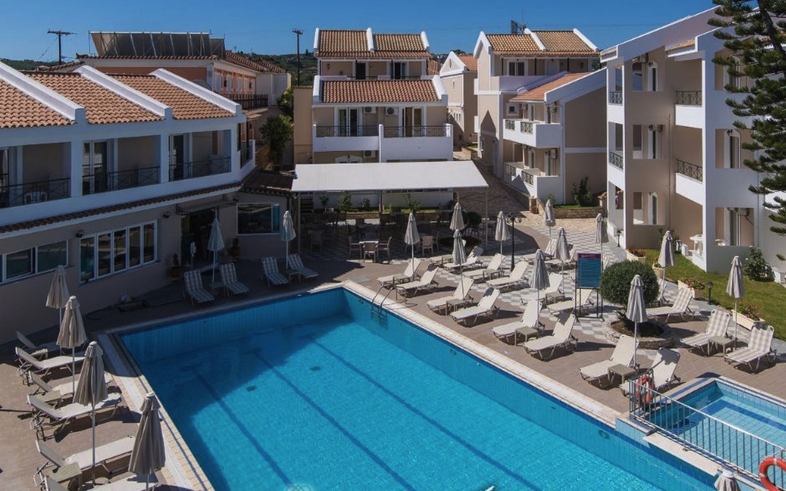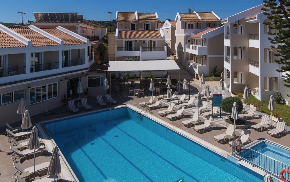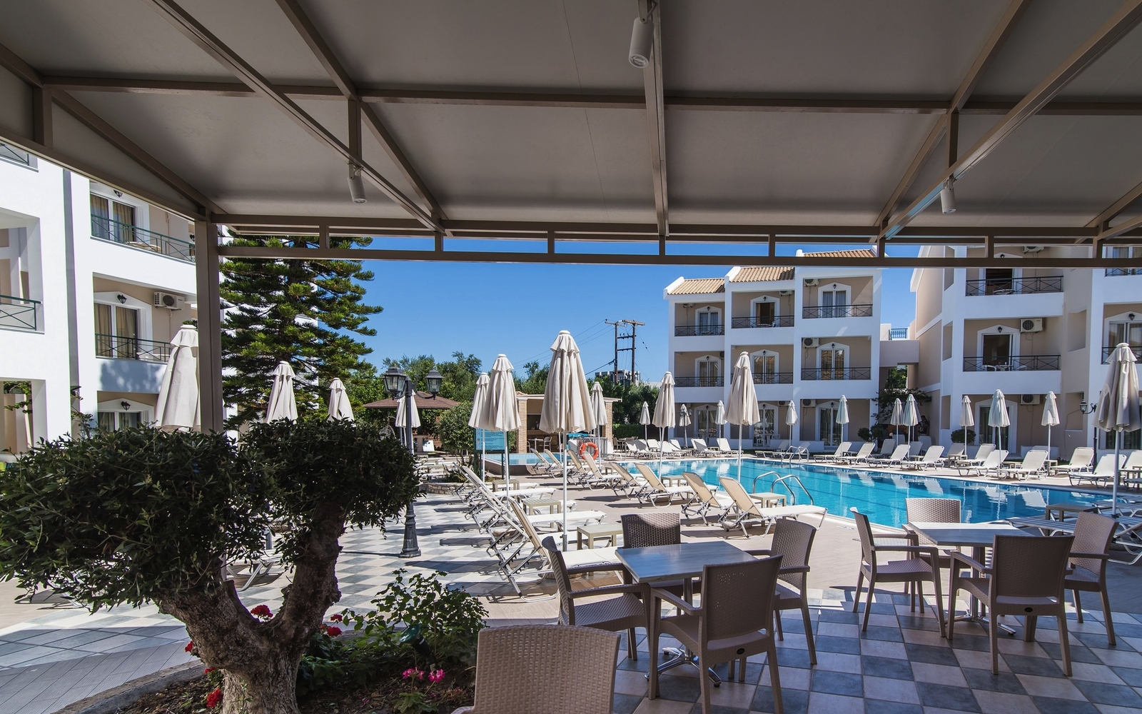 Das familiengeführte Hotel liegt ca 300 m vom Strand etwas außerhalb der bekannten Urlaubsregion Tsilvi und bietet authentische griechische Gastfreundschaft. Der Strand ist bequem erreichbar, ebenso wie kleine Tavernen und Geschäfte in der Umgebung. Eine Bushaltestelle sorgt für gute Anbindung an die Inselhauptstadt und Ausflugsziele. Das Haus verfügt über eine gemütliche Lobby mit Rezeption, ein Restaurant mit regionaler Küche sowie eine Bar für entspannte Abende. Im gepflegten Gartenbereich lädt ein Pool mit Liegen und Sonnenschirmen zum Relaxen ein.