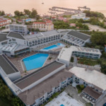 Das moderne und sehr komfortable Hotel wurde in den letzten Jahren renoviert und ist nun eine sehr beliebte Anlage mit stylischen Elementen. Etwas oberhalb zwischen 2 Stränden gelegen sind es bis zum Meer nur ca. 150 - 300 m. Die Region ist bekannt für die vielen nistenden Schildkröten. Ein kleiner Yachthafen ist nur wenige Minuten entfernt und die bekannte, kleine Insel Cameo Island - die mit einem Steg mit Zakynthos verbunden ist - erreicht man nach ca 400 m. In der Umgebung gibt es Restaurants, Beachclubs und Bars. Insgesamt 4 Pools (davon ein Kinderpool) befinden sich inmitten der Anlage. Ein kleiner Wellnessbereich steht gegen Gebühr zur Verfügung. Insgesamt 3 Bars (davon eine á la carte Bar gegen Zuzahlung) servieren tagsüber und abends Getränke. Das schöne Hauptrestaurant lädt zu de Mahlzeiten zum Verweilen ein.