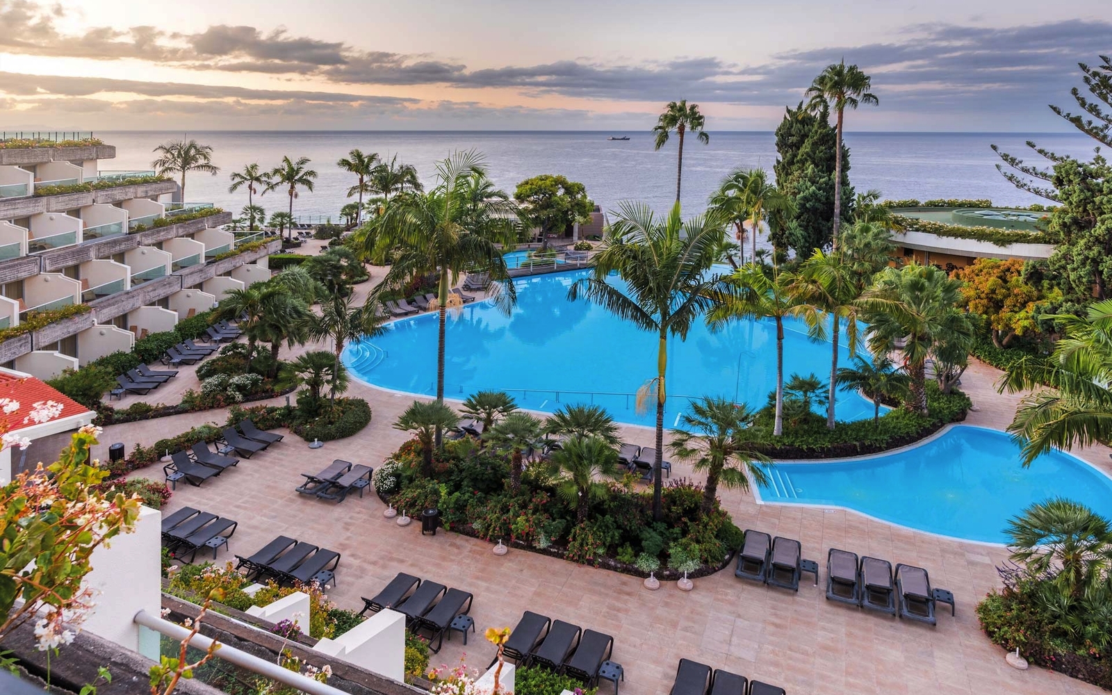 Das Premium Hotel der bekannten Pestana Gruppe liegt traumhaft und direkt am Meer in der Bucht von Funchal. Bis ins Ortszentrum sind es nur ca. 10 Gehminuten. Von vielen Zimmern und Hotelbereichen hat man einen traumhaften Blick über den tiefblauen Atlantik. Im unteren Bereich der Anlage hat man einen Meereinstieg, der zum Baden im glasklaren Wasser einlädt. Hier befindet sich für sportbegeisterte auch eine Tauchschule (externer Anbieter). Neben dem schönen, lagunenartigen Hauptpool mit Snackrestaurant und Bar befindet sich auf Meereshöhe ein weiterer Pool. Liegen und Sonnenschutz sind in den öffentlichen Bereichen inklusive. An verschiedenen Bars im Innen- und