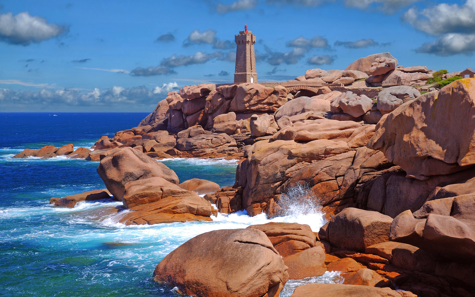 Salzige Meeresluft und das Rauschen der Wellen begleiten Sie entlang der spektakulären Rosa Granitküste, wo Wind und Wasser bizarre Felsformationen geschaffen haben, die wirken, wie aus einer anderen Welt. Über allem liegt der Duft des Meeres und der Klang der Freiheit. Auf der Halbinsel Crozon offenbart sich das „Ende der Welt“ in rauer Schönheit, während vom Cap Fréhel der Blick über das tiefgrüne Meer bis zum Horizont reicht.