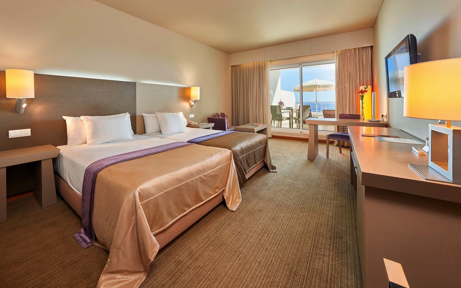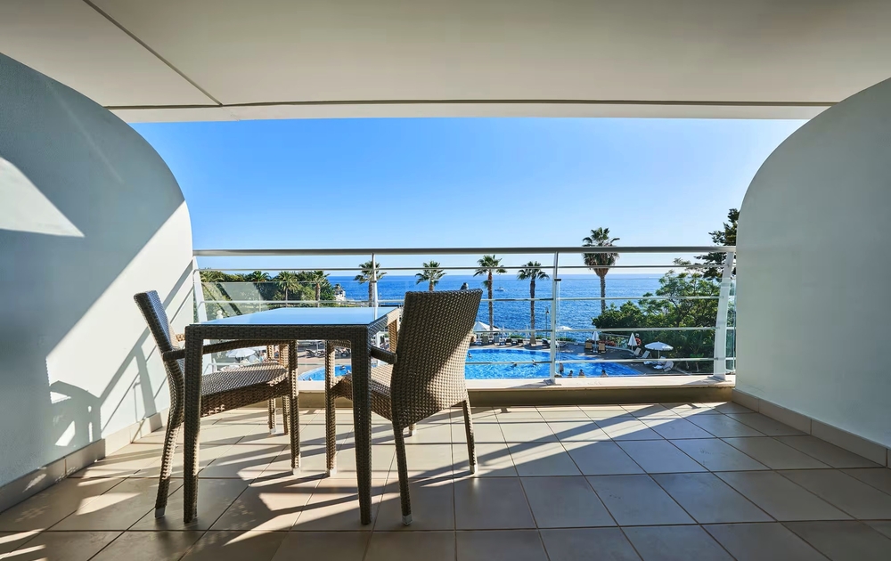Die geschmackvoll eingerichteten Zimmer bieten höchsten Komfort: Klimaanlage, TV, Minibar, Safe und ein elegantes Bad mit Dusche oder Bad/WC, sowie Balkon wahlweise mit seitlichem oder direktem Meerblick. Die Superior Zimmer bieten neben Meerblick einen größeren Balkon mit Sonnenliegen.