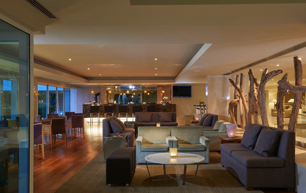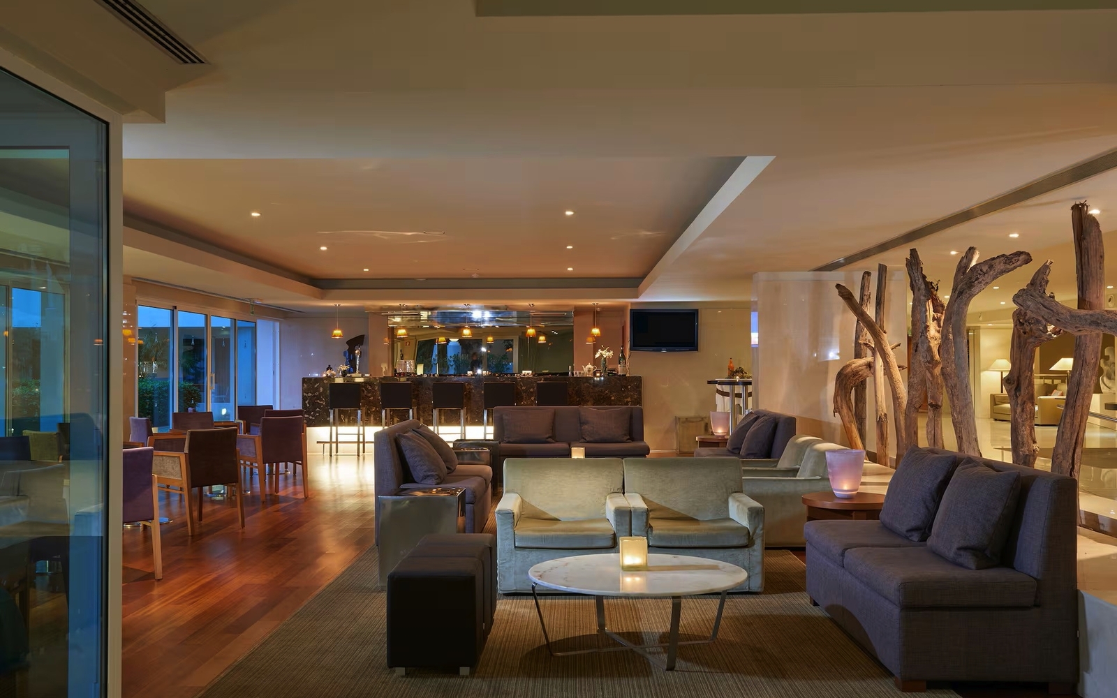 Atmosphäre: Großzügige Glasfronten eröffnen den Blick aufs Meer, während edle Materialien und dezente Farben für ein stilvolles Ambiente