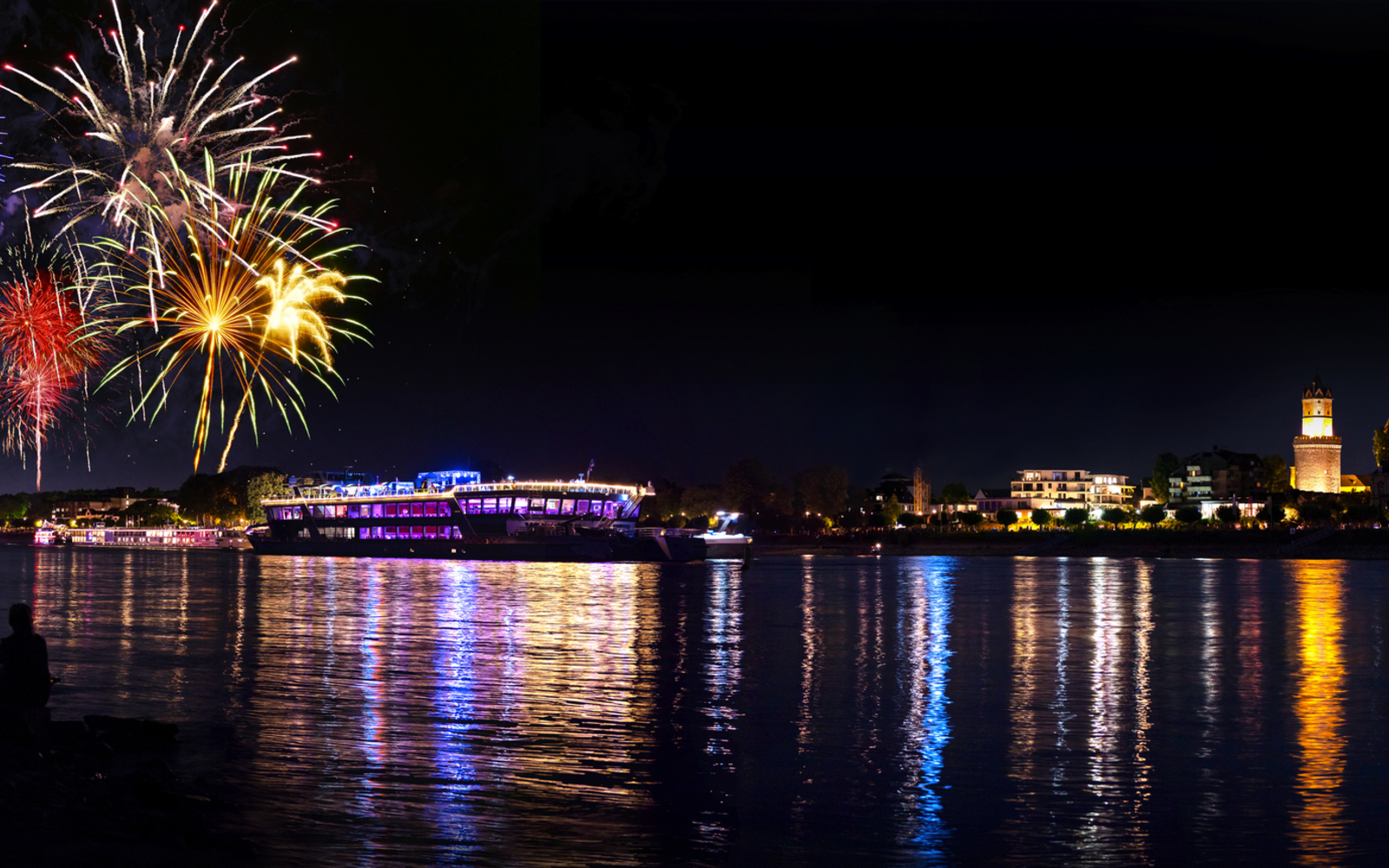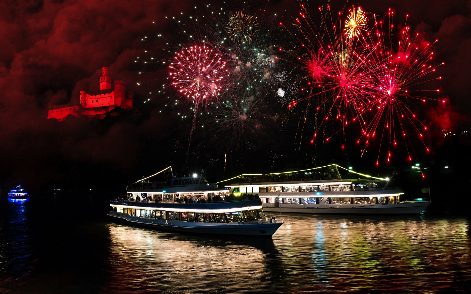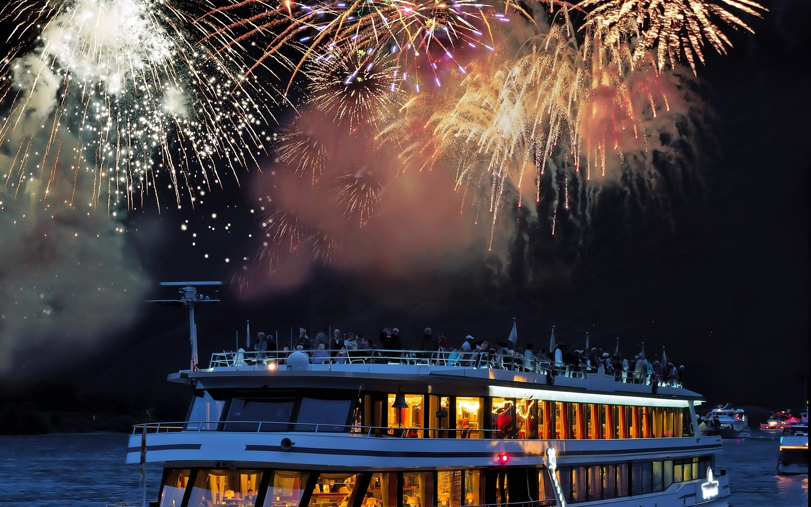 Erleben Sie „Rhein in Flammen“ – ein unvergessliches Spektakel aus Feuerwerk, festlich beleuchteten Burgen und romantischer Rheinlandschaft. Ob in Bingen/Rüdesheim, Koblenz oder Oberwesel: Sie genießen das Lichtermeer vom Schiff aus, begleitet von Musik und kulinarischen Spezialitäten. Eine Reise voller Atmosphäre, Rheinromantik und unvergesslicher Eindrücke.